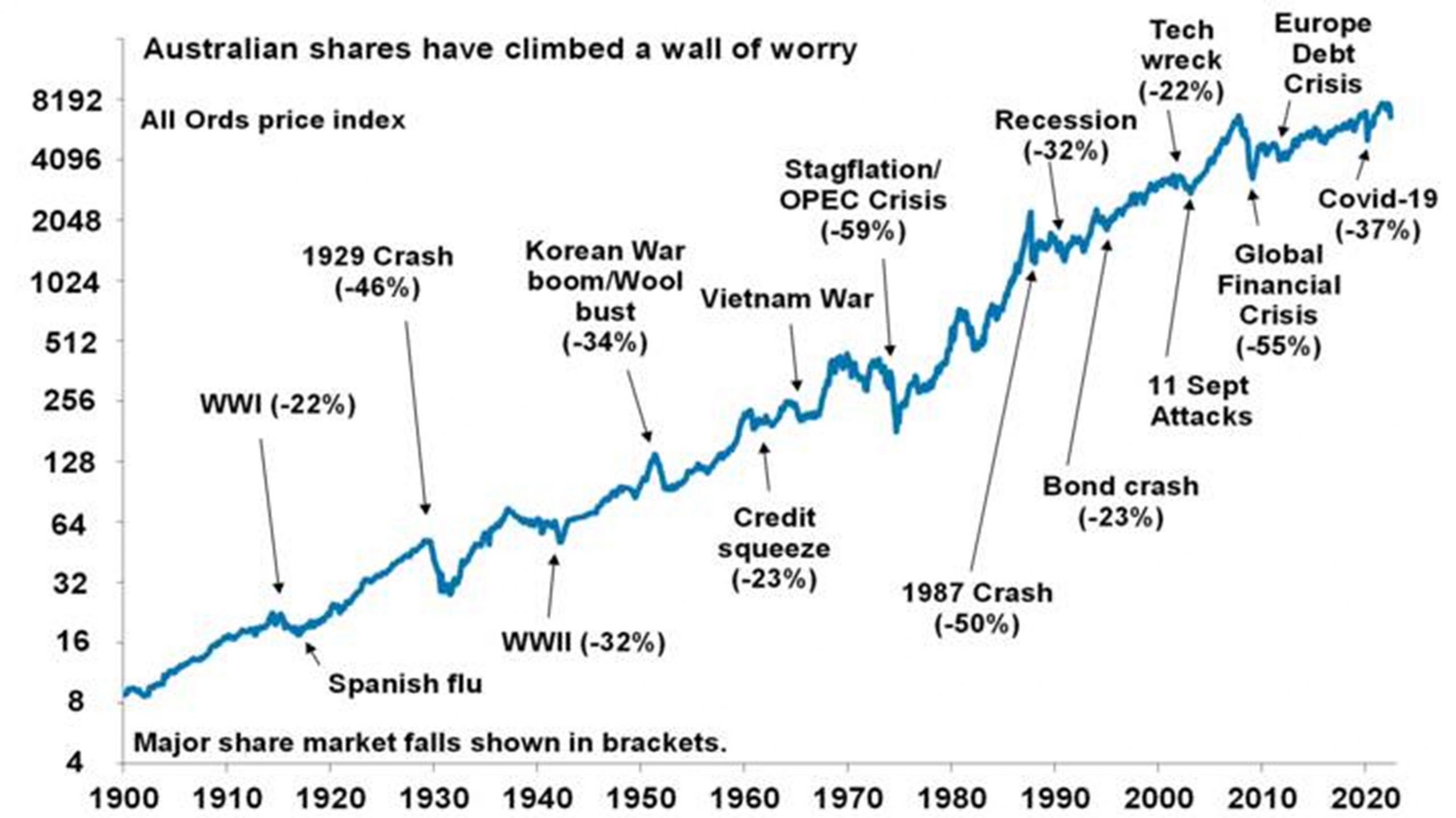 Finally, turn down the noise. At times of uncertainty like now, the flow of negative news reaches fever pitch. Talk of billions wiped off share markets and of “crashes” help sell copy and generate clicks. But less newsy are the billions that market rebounds and the rising long-term trend in share prices add to the share market. Moreover, they provide no perspective and only add to the sense of panic.